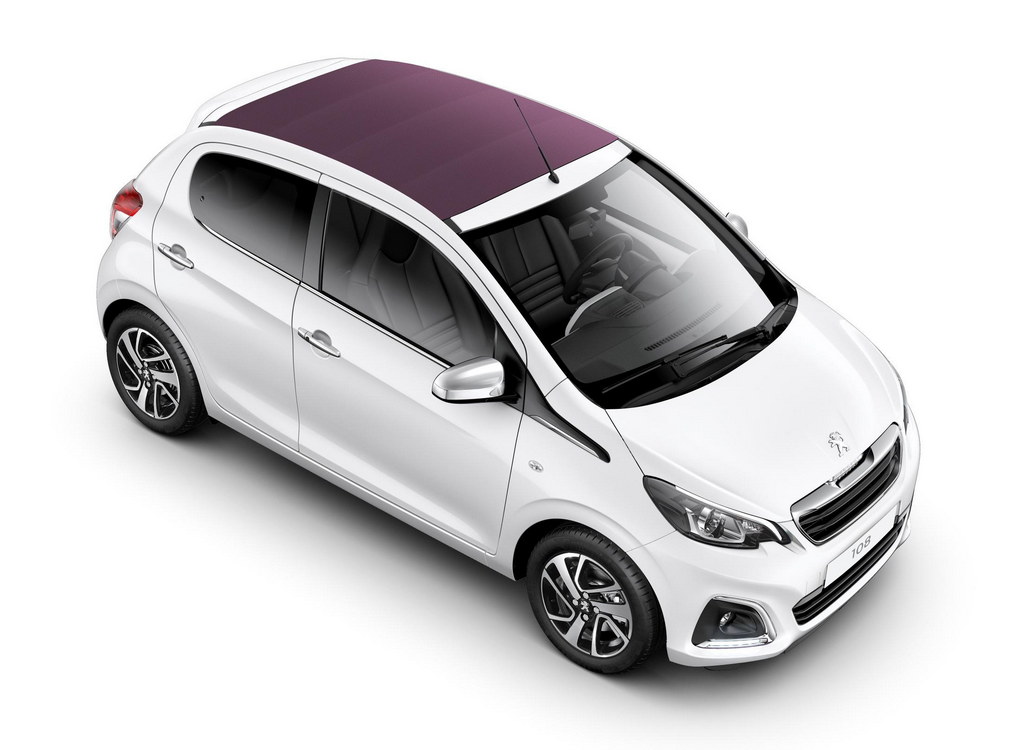 With a funky and cutesy design dominated by Peugeot’s new corporate look at the front, the 2015 Peugeot 108 offers a ton of personalization options. You get 8 exterior colors with two Purple Berry and Zircon Grey two-tone jobs; three retractable fabric roof colours – Black, Grey or Purple Berry; seven personalisation themes; three interior ambiences; and a choice of six trims.