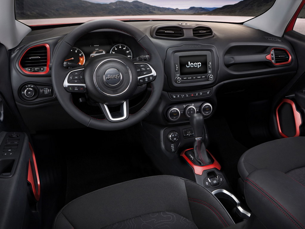 Designed as a fuel-efficient crossover with decent off-road capabilities, the 2015 Jeep Renegade comes with depending on the market, a choice of 16 different engines and two new four-wheel-drive system. You can choose between a full-time 4×4 system or a class-exclusive full-time 4×4 system with 20:1 crawl ratio. They both come with Jeep Selec-Terrain system, providing up to five modes (Auto, Snow, Sand and Mud modes, plus exclusive Rock mode on the Trailhawk model, which is the most capable version).