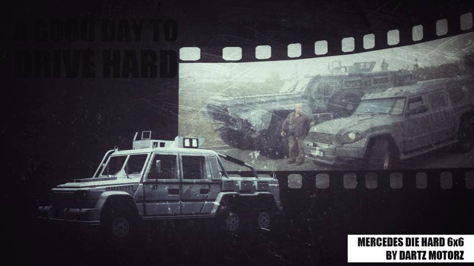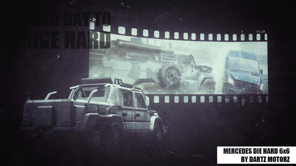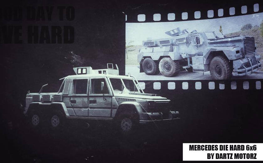 Dartz Mercedes G63 6×6 Die Hard, or DrIvE Hard, is inspired by Cougar 6×6 MRAP (Mine Resistant Ambush Protected) featured in Die Hard 5, and is described by its makers as the “Result of sex between MRAP and Mercedes G” and “World’s first funky armored car.”