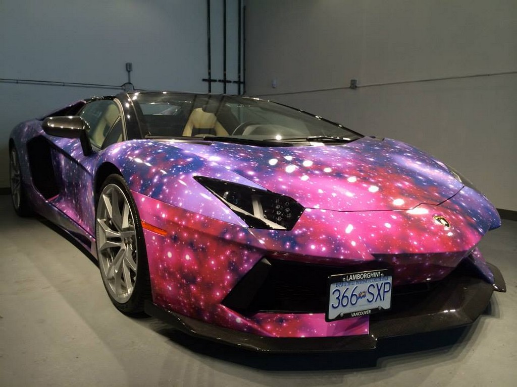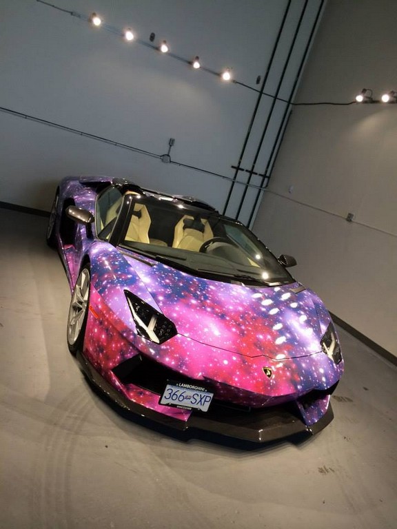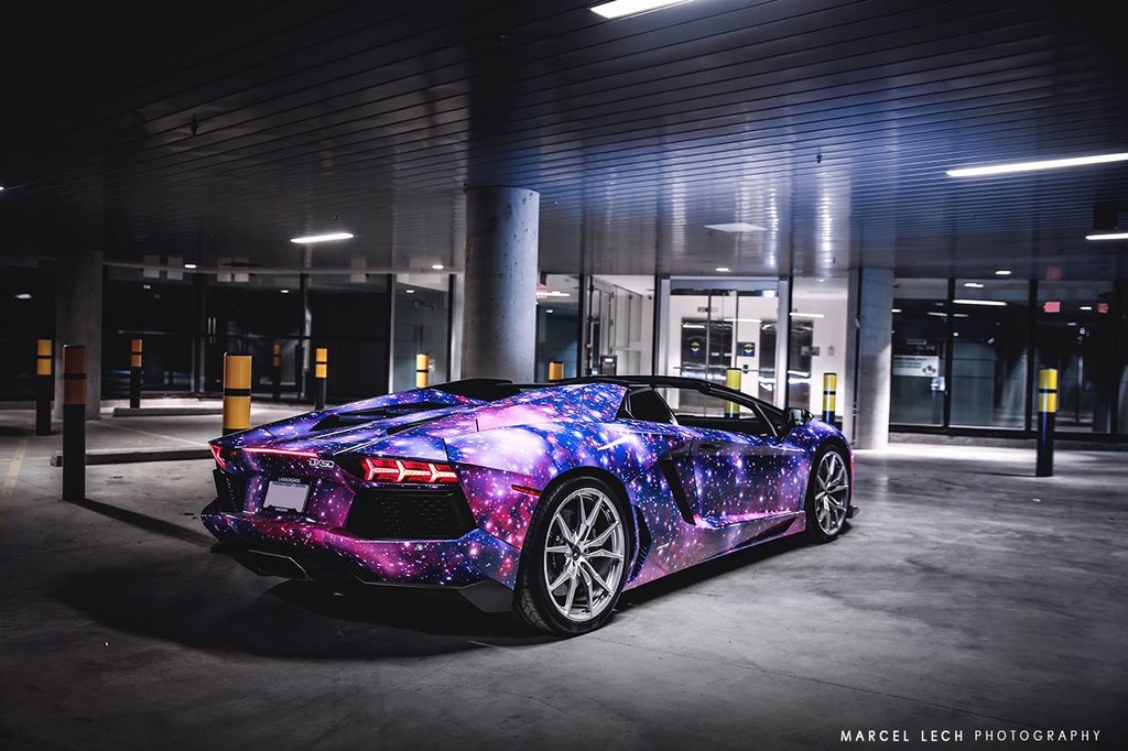 When Arabs think of a unique wrap, it’s usually gold. When Americans think about it, the color of choice is matte black. The Germans like gunmetal grey, and the Chinese are big fans of pink. The Canadians, well, turns out they are complicated. This is their idea of a unique wrap for a unique car: a galaxy-themed Lamborghini Aventador Roadster.