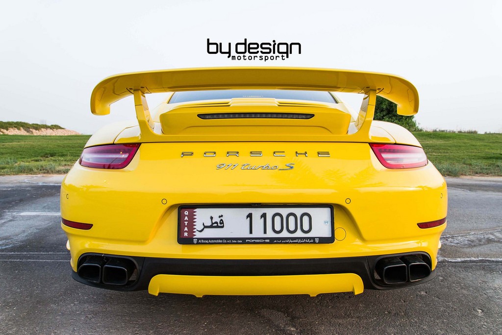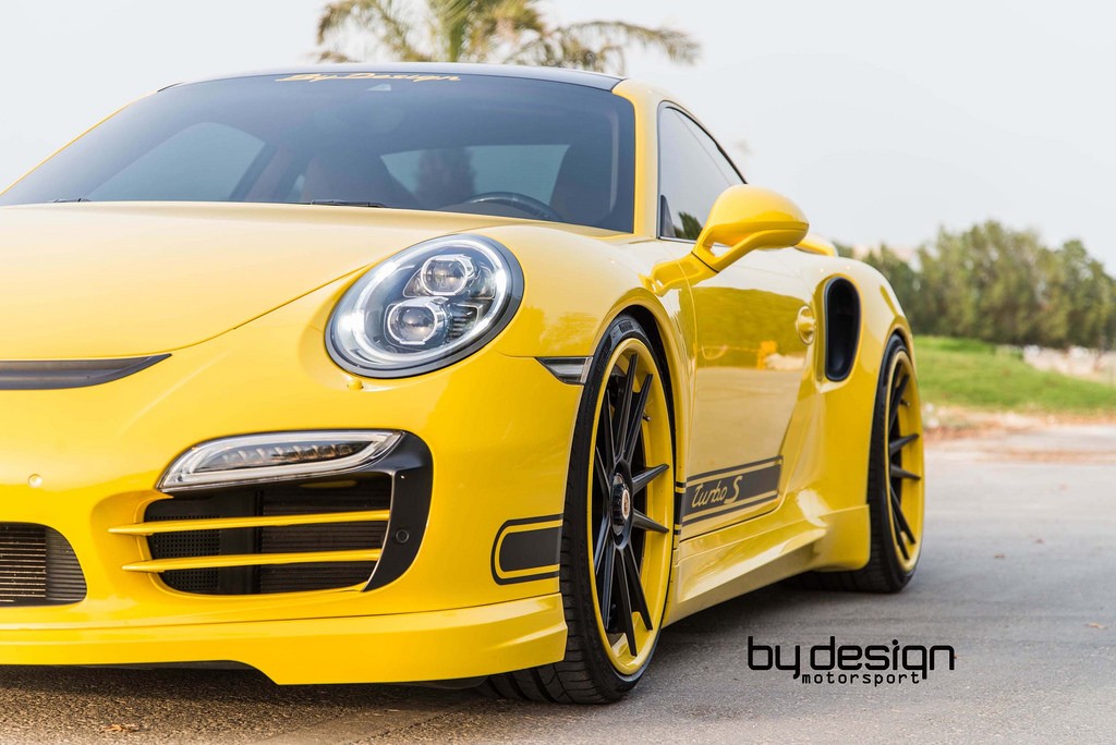 ByDesign Porsche 991 Turbo S is finished in bright yellow and decorated with black accents and graphics. It may sound like a bit of a stretch, but the paint scheme on this car reminds us of the original Carrera 2.7 RS.