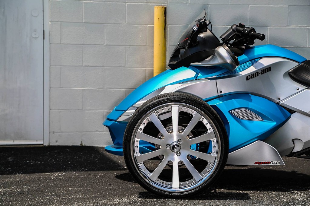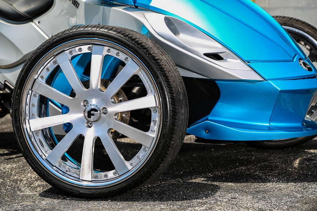 Forgiato is the maker of some of the world’s most high-end wheels. Their typical customers are actors, musicians and entrepreneurs who want to distinguish their whip with nice and expensive wheels. Their products are not limited to cars either, as seen with this Can Am Spyder customized with bespoke color and a set of Concavos wheels.