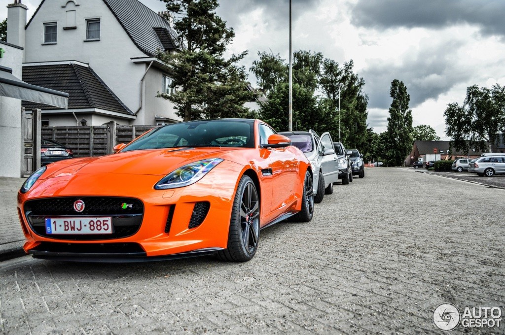 A fine example of the Jaguar F-Type R Coupe has been spotted in Belgium, rocking a bright orange paint work. The British coupe reportedly belongs to Belgian racer Marc Goossens, who has opted for blacked-out roof and wheels.
