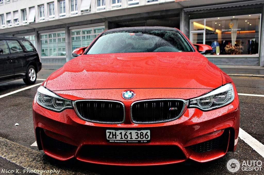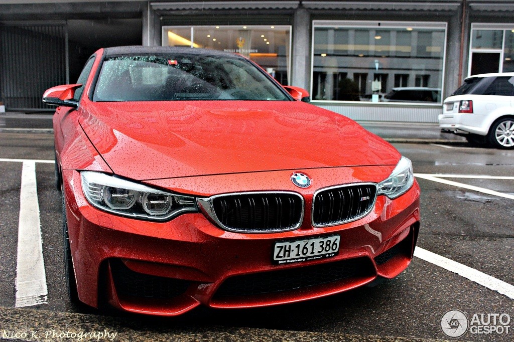 According to the official BMW M4 configurator, this color is called Sakhir Orange, even though it looks more red than orange. At any rate, with the gloss black wheels and the carbon fiber roof, Sakhir Orange BMW M4 is the stuff that dreams are made of!