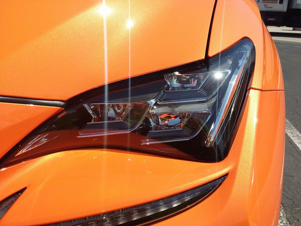 Lexus RC F Solar Flare comes in a bright shade of orange that shines and shimmers when sunshine hits it, giving the impression the car is fast even when it’s standing still. This color is probably an answer to BMW’s Sakhir Orange which was widely used for the special editions of the E92 M3.