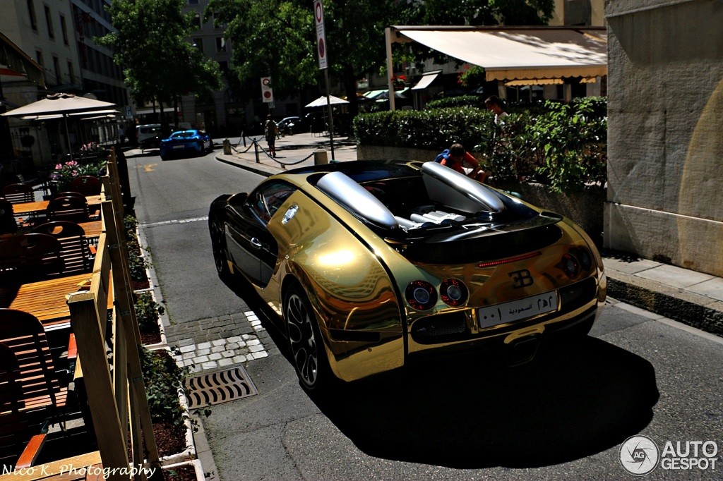 And it doesn’t get much more wonderful than this. Here on a back street in Geneva, Switzerland, spotters scooped a Golden Bugatti Veyron rocking Saudi 001 number plate, which means the fella behind the wheel is a very high-ranking royalty.