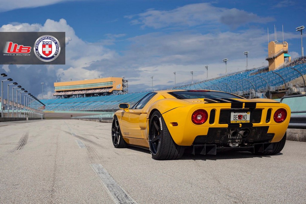 We are of course familiar with the Heffner Twin-Turbo Ford GT; a mad speed demon with well over 800 horsepower and a superb yellow paint job with black stripes. The rims the guys from Wheels Boutique have chosen for this car complement the theme with their matte black finish. Meanwhile those Pirelli Pzeros with the big lettering on the wall make wanna get out of the car every five minutes and admire them.