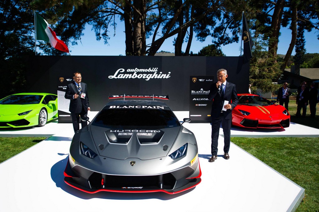 This year at the Pebble Beach concours Lamborghini enjoyed a fairly prominent place for their magnificent lineup which included three extremely hot cars. The centerpiece was the new Huracan Super Trofeo, and it was flanked by the production Huracan and a special Aventador by Ad Personam.