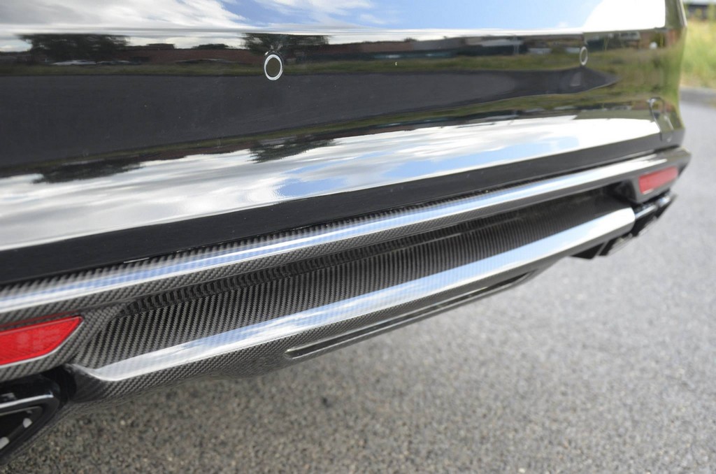 Compared to the normal versions, this “murdered-out” Mercedes S63 AMG swaps every last bit of its chrome parts for blacked-out elements. It also gets an aero kit in exposed carbon fiber, but here the sheer blackness of the car works against it and kind of obscures the elegant carbon bits, which include the front spoiler lip, rear diffuser, and side mirrors.