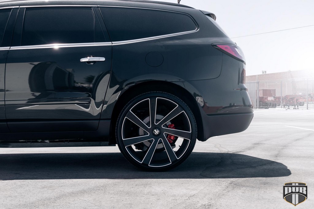This is DUB Wheels Chevrolet Acadia which they have tricked-out with couple of nice visual features and a set of ginormous 24-inch wheels. That may seem a bit extreme, but you have to understand we’re talking about an Acadia here. It takes a lot to turn this thing around.