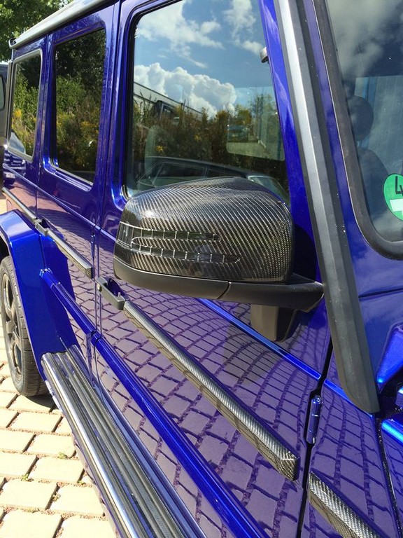 GSC Mercedes G-Class styling package is a fairly thorough one featuring new front and rear bumpers complete with spoilers, LED lights, new side skirts, flared wheel arches, air vents, grilles, bonnet, and tailpipes. What sets it apart further is all the nice carbon fiber detailing that garnished these parts.