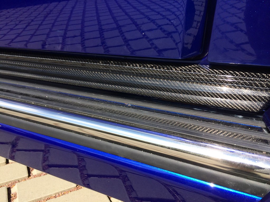 As you can see in these detailed pictures, GSC Mercedes G-Class features carbon fiber accents in its front spoiler, running boards, door molds, vented bonnet, mirror caps, and rear apron. Other nice details include a pair of chunky skirts that wrap around the new GSC-branded tailpipes, and a blacked-out roof.