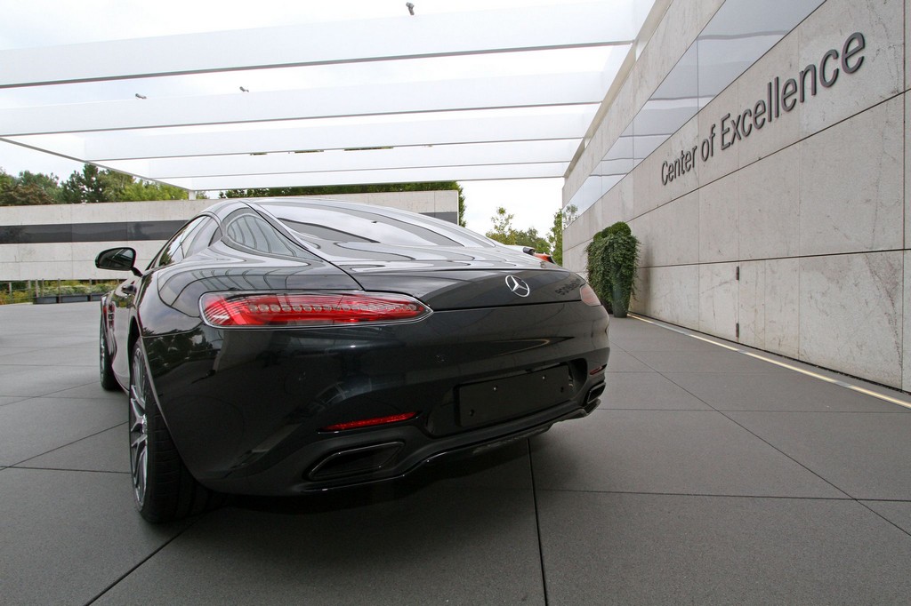 ‘Center of Excellence’ is the name given to a number of special showrooms first created by Daimler to cater to Maybach customers. With the demise of that brand, the facilities are now used to showcase the latest models, and the one in Sindelfingen is where the new Mercedes AMG GT is on display these days.