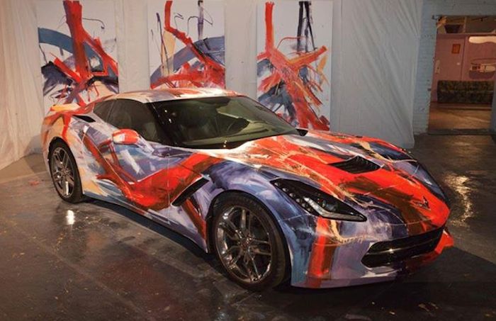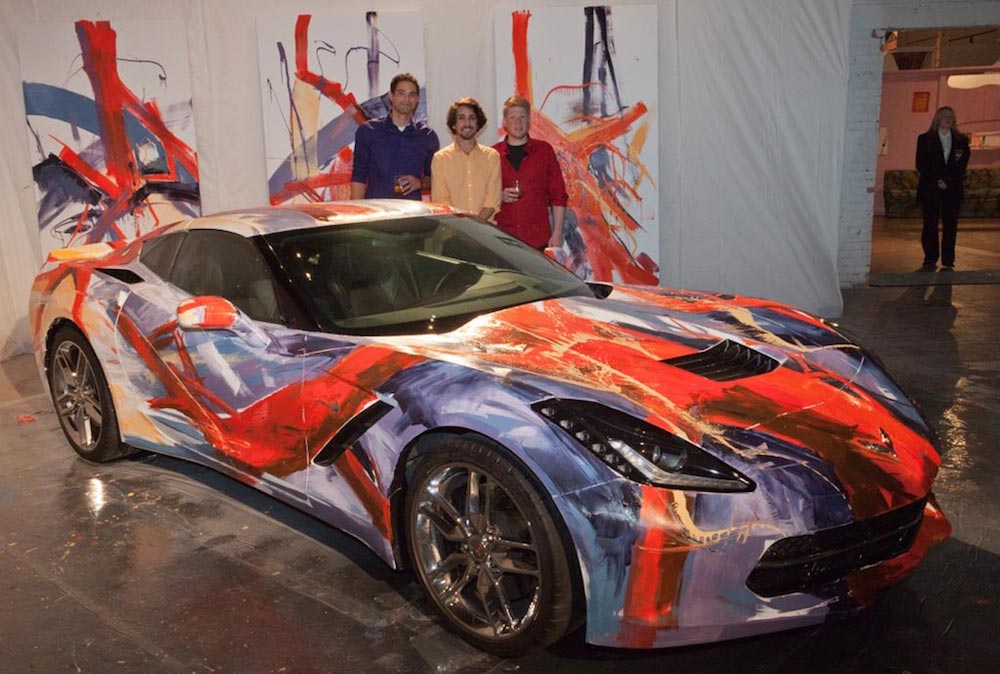 Corvette Stingray Art Car was painted by three GM Design employees: Casey Swanseger, 30, a creative designer and graduate of the Cleveland Institute of Art; Tyler Mars, 28, digital sculptor and a graduate of Detroit’s College for Creative Studies (CCS); Haneif Katebi, 25, creative designer, sculptor and a graduate of Detroit’s College for Creative Studies.