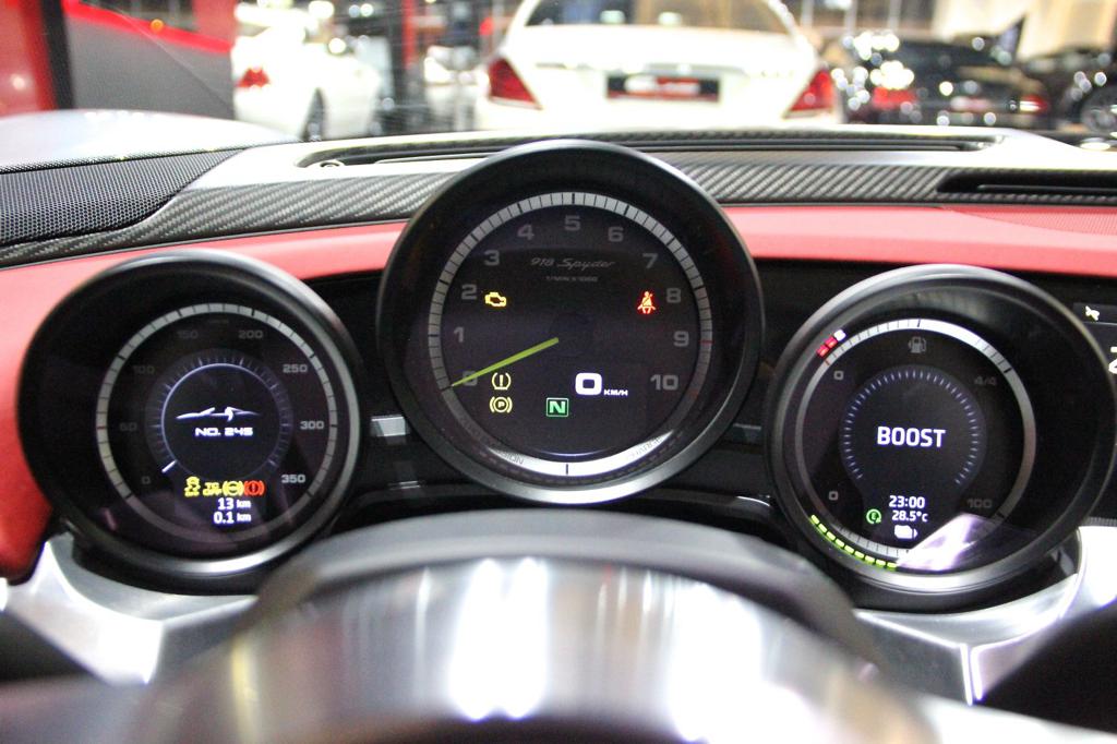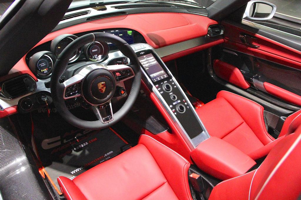 This elegant silver Porsche 918 Spyder features a two-tone red and black interior, while naked carbon fiber parts intermittently inside and out to strike the right balance sportiness and luxuriousness. In these photos you get to have to good look at the car’s exquisite details, especial inside the cabin, and see what the world looks like from behind the wheel of a million dollar hyper car!