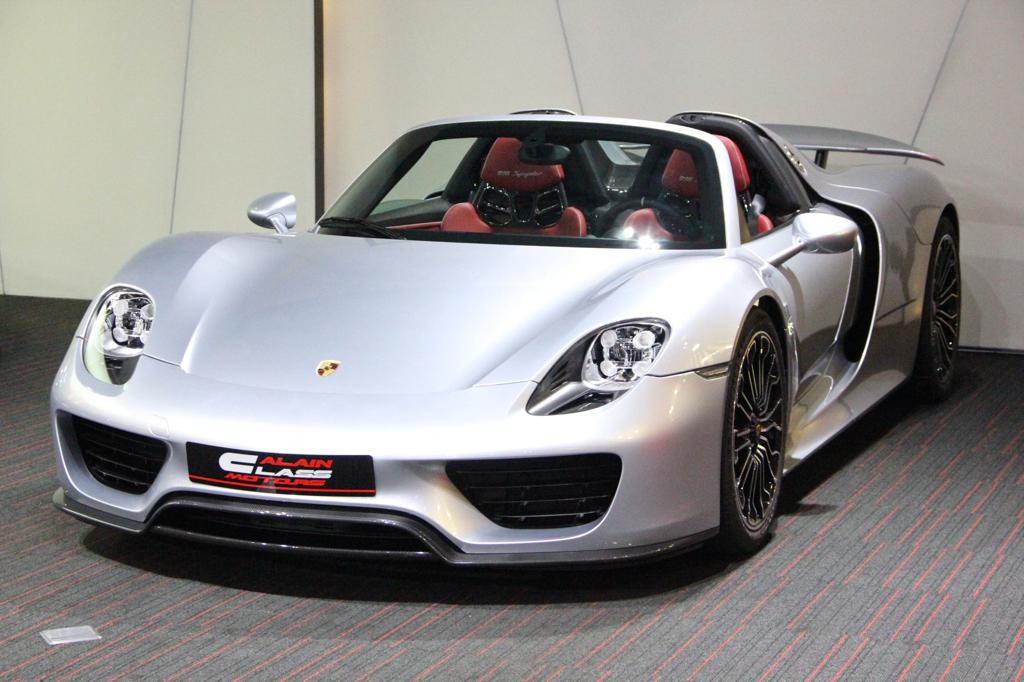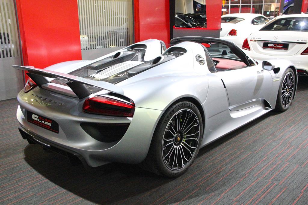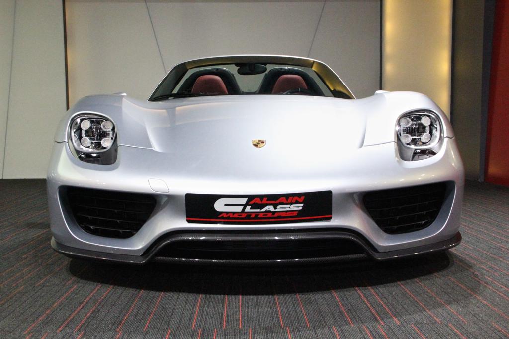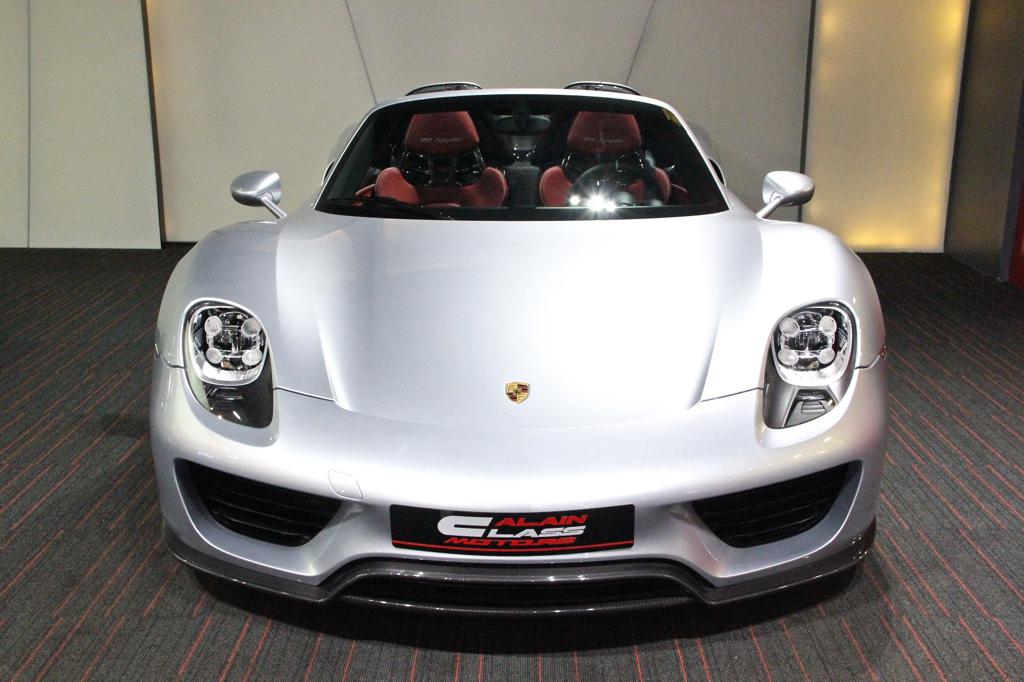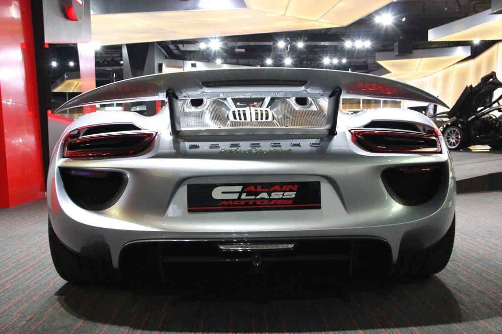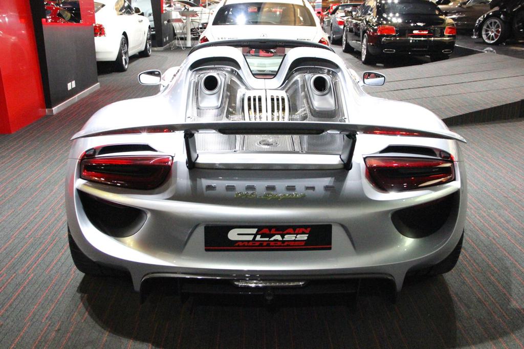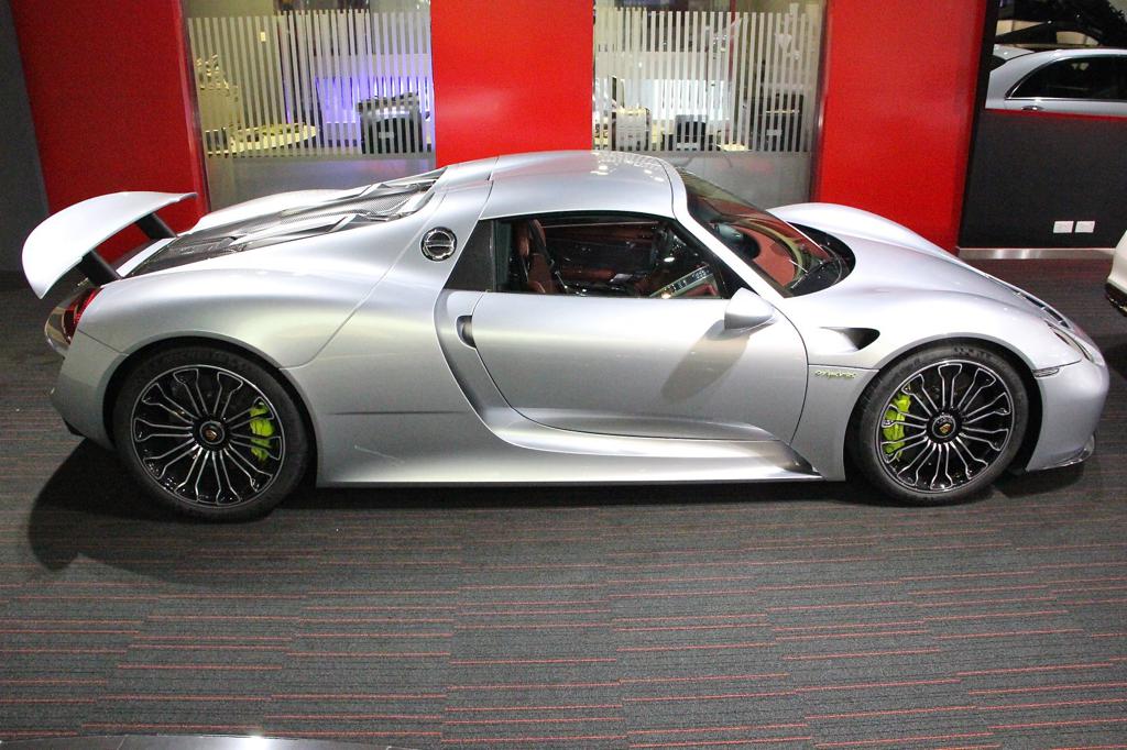 As great as the Porsche 918 Spyder looks with the special colors and liveries of the Weissach Package, the true beauty of its design is most evident when it is sporting a plain and simple color. Here’s a bright silver 918 sitting pretty at Alain Class’ huge and hugely impressive showroom in Dubai.