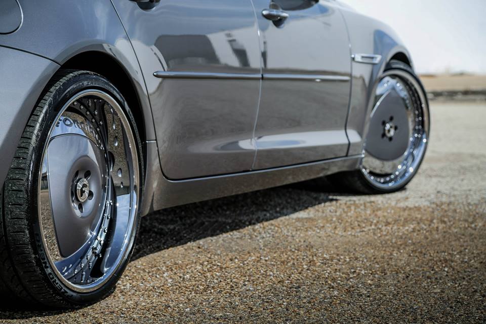 He sent the car to Forgiato where they fitted it with a set of Maschili wheels and a custom Forgiato grille. The unique design of these wheels is actually very interesting and they would work brilliantly on, say, a custom Chrysler 300 or something. On this Jag, though, they look rather ridiculous. And then there’s that grille… oh dear!
