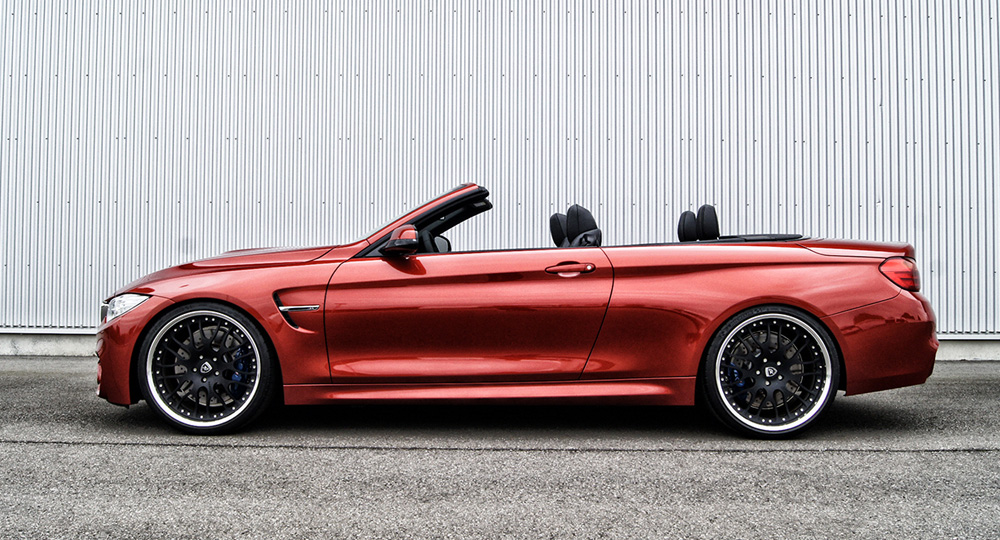 The ingredients of Hamann BMW M4 Convertible recipe include a body kit, sport exhaust system, a wide range of amazing sports wheels, engine treatment, and interior mods. In terms of styling, the package includes a 7-piece rear apron and diffuser, side sills, front spoiler, and an optional carbon bonnet.