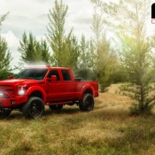 You kind of get the idea this Ford F-250 is prepared for the Halloween and it is going for the blood-soaked murderer theme. But no, this is a normal business pickup ordered by someone who apparently likes the color red a lot. Apart from the body, they have painted the bumpers, grilles, guards, lights, and running boards even, in metallic red. The huge Fuel Wheels, crucially remain black with only tiny red accents on the spokes as a sign that they too are custom.