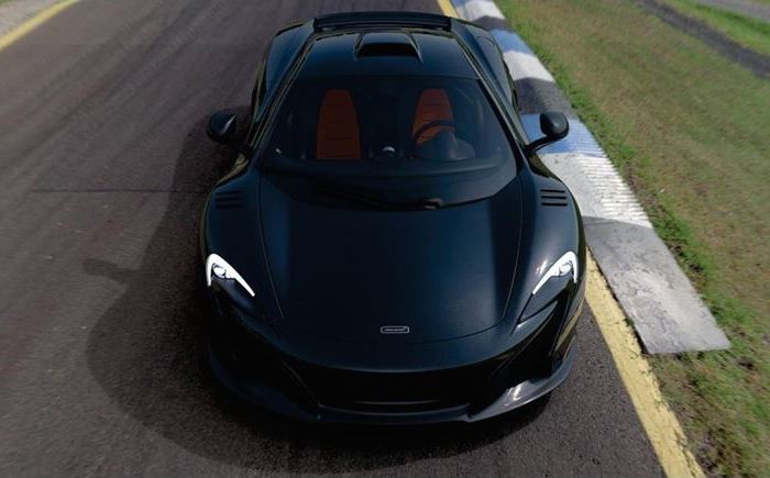 The 2015 McLaren 650S MSO limited edition comes with unique styling cues borrowed from the race-winning chassis #01R F1 GTR, including a roof scoop and louvered fender vents. The car also features visible carbon fiber front splitter, side mirrors, side vents, and air brake/rear spoiler.