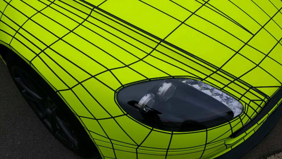 As far as wraps go, you have to admit this one’s quite special. It comes with a sort of matte yellow base that is pretty amazing on its own. But that is then garnished with loads of reflective lines that appear to follow no particular pattern. Applying such a treatment to a classy car like the Aston Martin Vantage is kinda questionable, but that doesn’t mean the end result is anything less than spectacular.