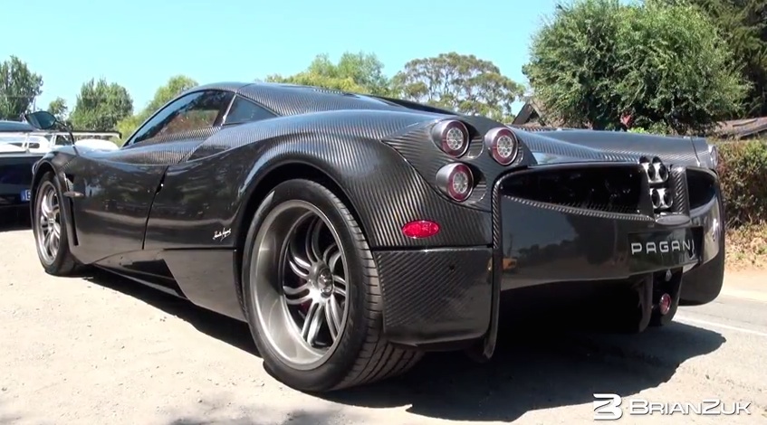 The fully exposed carbon Pagani Huayra does not come with a paint job as such, just a few layers of clear coat to give a deep shine to the carbon fiber body panels, meticulously put together for their weaves to match. It looks incredible on the move, even though some people say carbon cars make you look like a bit of a dork!