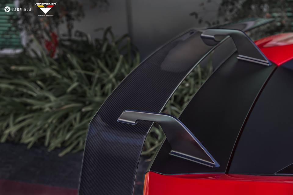 The main focus of this photoshoot is to show off the rear wing on Vorsteiner Lamborghini Huracan Verona. The American tuner is very proud of this part, but that’s not the only good thing about the package. There are also a front lip spoiler, rear diffuser, Vorsteiner wheels, and the all-important Vorsteiner stripe.