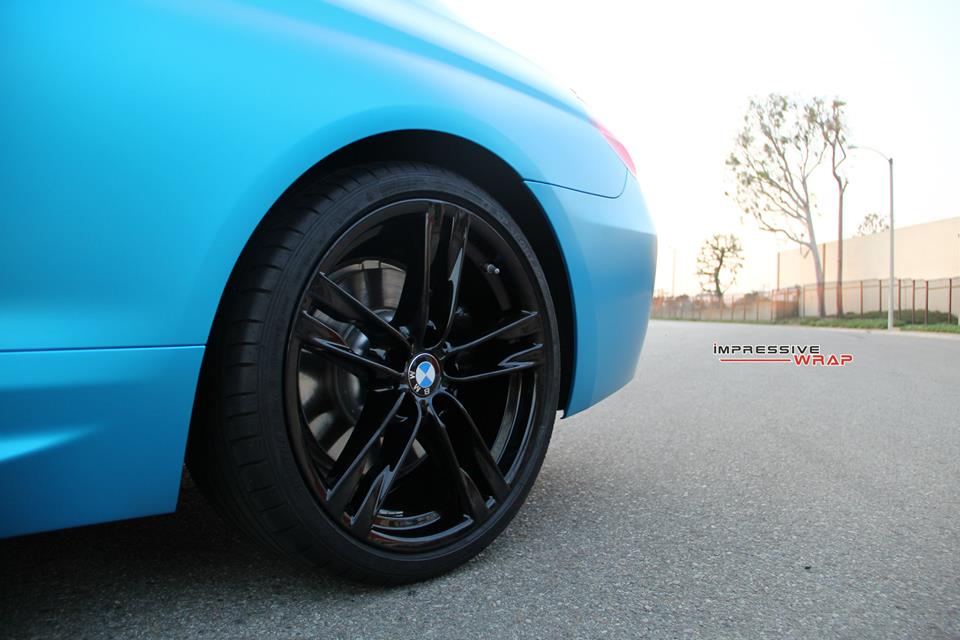 Even thought the rather serious design of the BMW 6 Series does not really lend itself to brash and vibrant colors, what the guys from Impressive Wrap have achieved with this one is quite, well, impressive. The color is called Satin Ocean Shimmer which is like a matte baby blue.