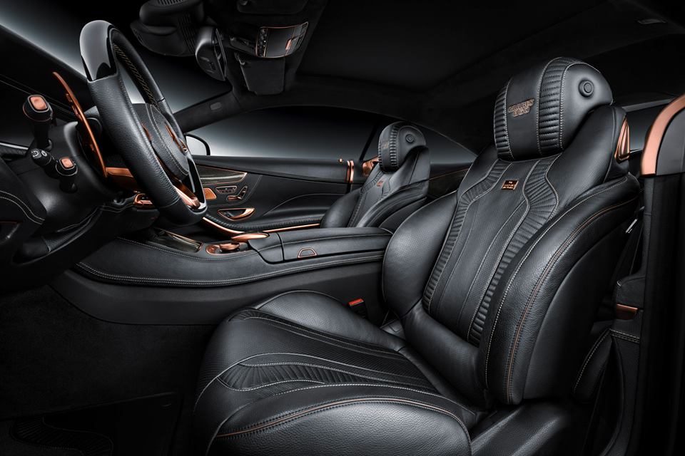 Brabus Mercedes S63 Coupe also comes with a pretty awesome body kit featuring custom bumpers, vented bonnet, flared wheel arches, side skirts and side vents, rear bumper with diffuser and tail spoiler. The highlight of the Geneva-bound car is a set of Monoblock “PLATINUM EDITION” 21-inch forged wheels in Shadow Gold Chrome with rubber in sizes 255/35 ZR 21 for the front and 295/30 ZR 21 for the rear axle.