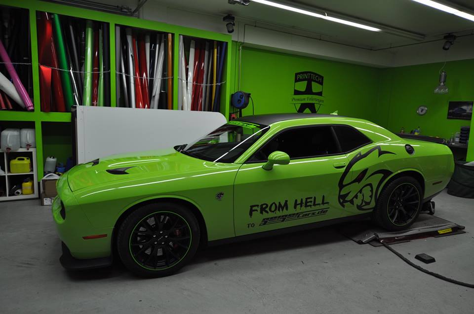 German muscle car tuner GeigerCars is working on a new project based on the Dodge Challenger Hellcat. As part of the styling package, they asked the professional wrappers at Print Tech to make it known this car is a Hellcat and not a run of the mill Challenger.