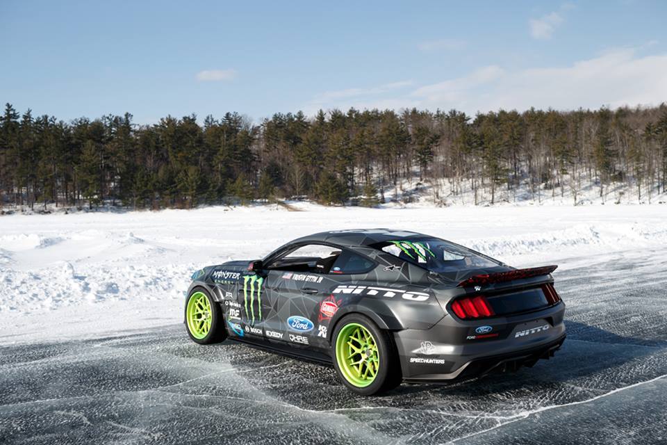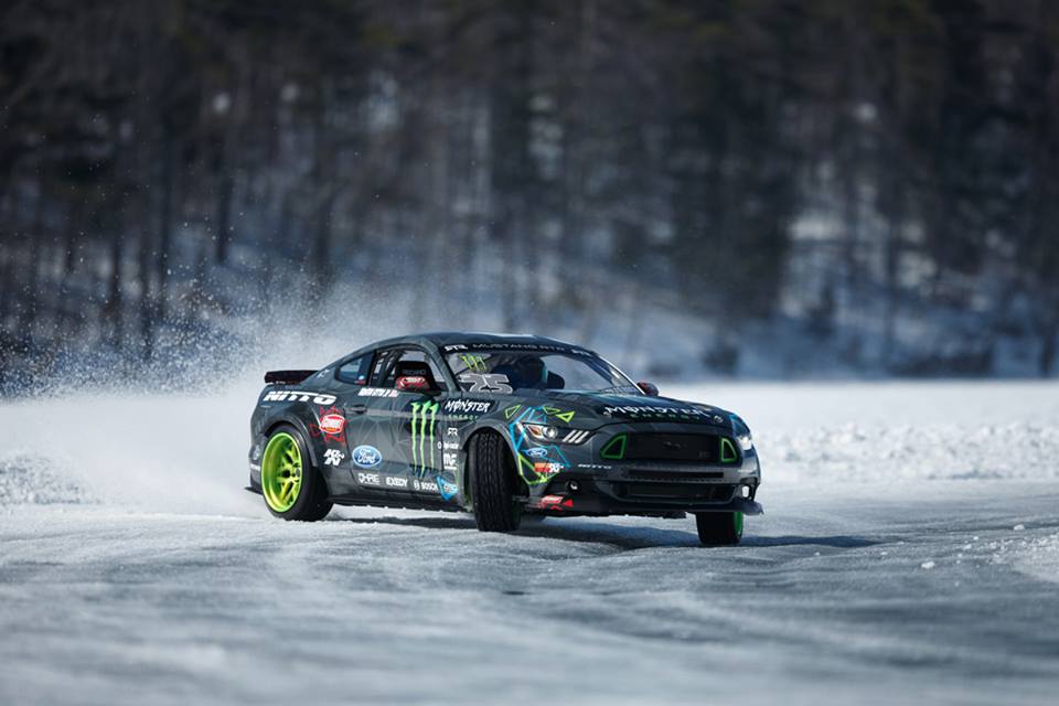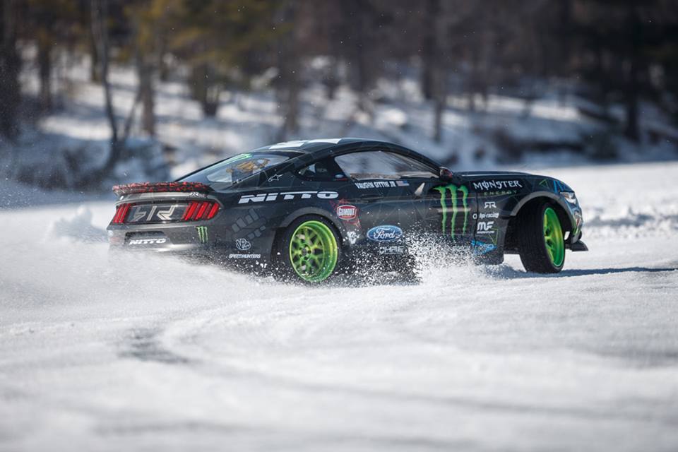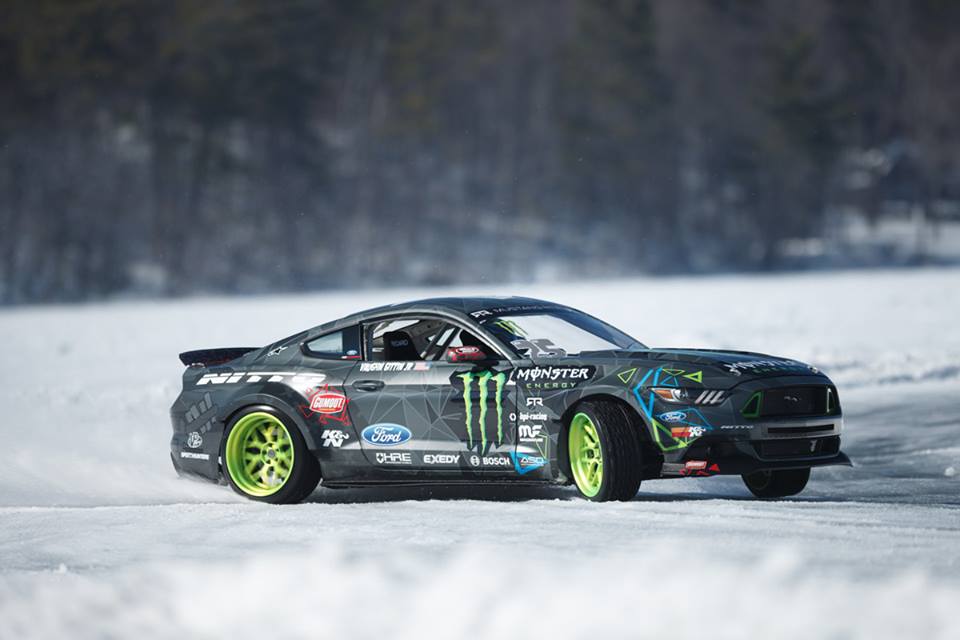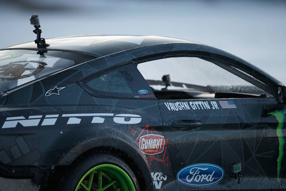 Vaughn Gittin Jr., professional drifter and a man almost as cool as Ken Block, has got all-new livery of his prototype competition 2015 Monster Energy Nitto Tire Ford Mustang RTR and wants to show it off to you in style. That means lots of sideways action, appropriately for the season, on snow and ice.