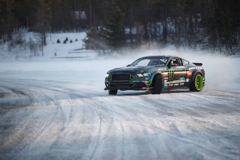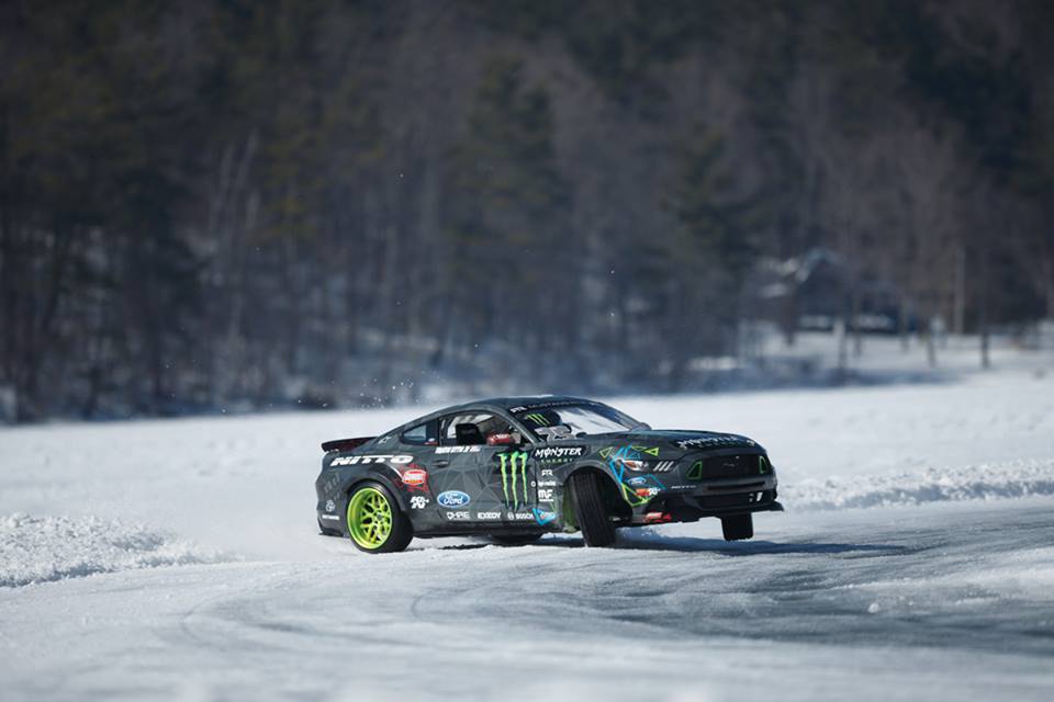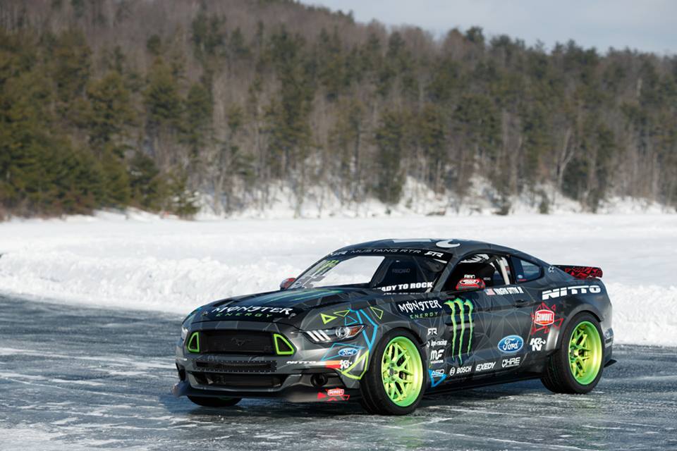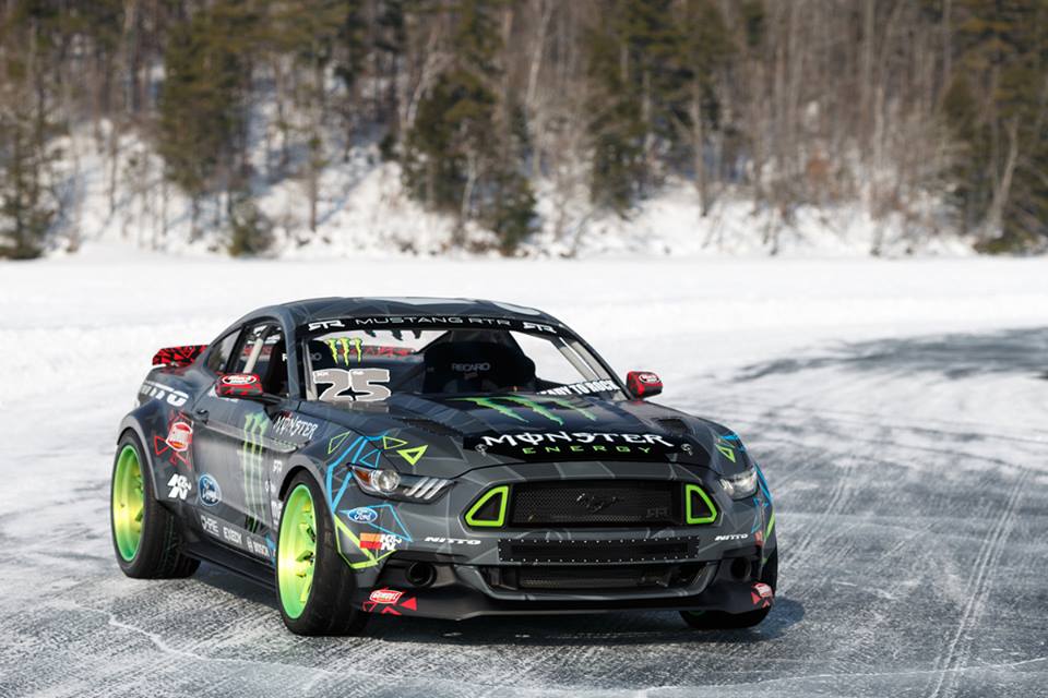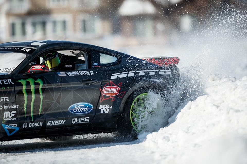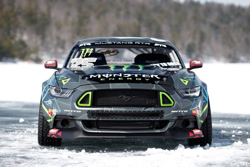 Vaughn Gittin Jr., professional drifter and a man almost as cool as Ken Block, has got all-new livery of his prototype competition 2015 Monster Energy Nitto Tire Ford Mustang RTR and wants to show it off to you in style. That means lots of sideways action, appropriately for the season, on snow and ice.