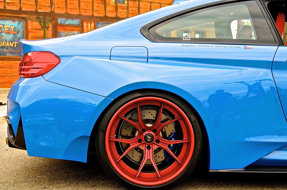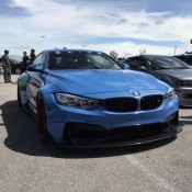 Put together by Elite Custom Performance, this Vorsteiner BMW M4 GTRS4 wide body is built to turn necks, and it did so beautifully at the M-Fest in Austin earlier this month. Being a show car explains the interesting choice of colors on this M4. The body, as mentioned, is finished in Yas Marina Blue which is a standard BMW color, while the Vorsteiner wheels are painted in a custom Sakhir Orange.