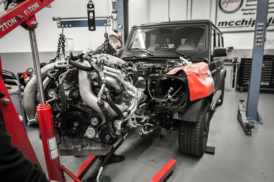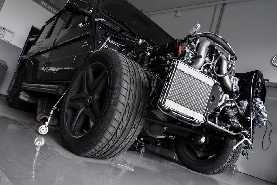 The new Mcchip Mercedes G63 AMG comes with a heavily revised engine featuring upgraded turbochargers, custom exhaust system with HJS sport cats supplied by Capristo, steel connecting rod, and of course a bespoke software which Mcchip creates in-house. With this kit installed the output of the G63 AMG will rise to 800-820 horsepower along with a peak torque of 950-1000 Nm. For other AMG models such as E, SL, and CLS the torque can set at 1,250 Nm, probably because they don’t feature a ladder chassis with three locking differentials!