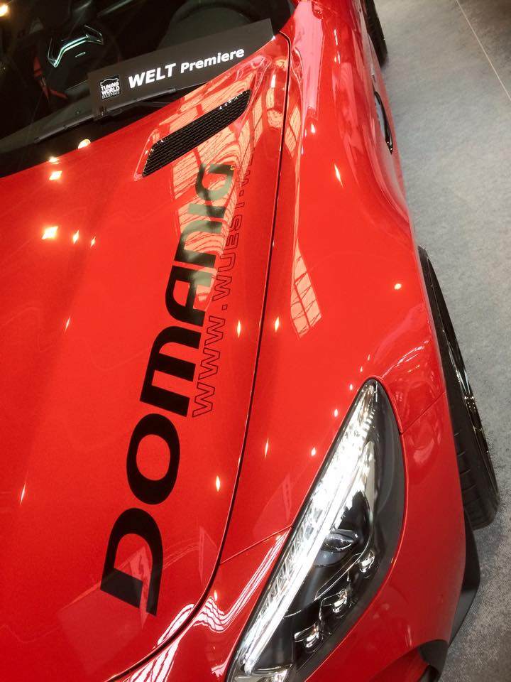 The red Domanig Mercedes AMG GT at 2015 Bodensee was a GT S Edition 1 version which means it came with a carbon fiber styling kit already installed in the factory. You notice this car has a larger front spoiler and a pair of little winglets on the either side of it, as well as a fixed rear wing at the back. These kind of eliminated the need for any body work on this car, so the tuner was satisfied with just a set of wheels and some suspension adjustment.