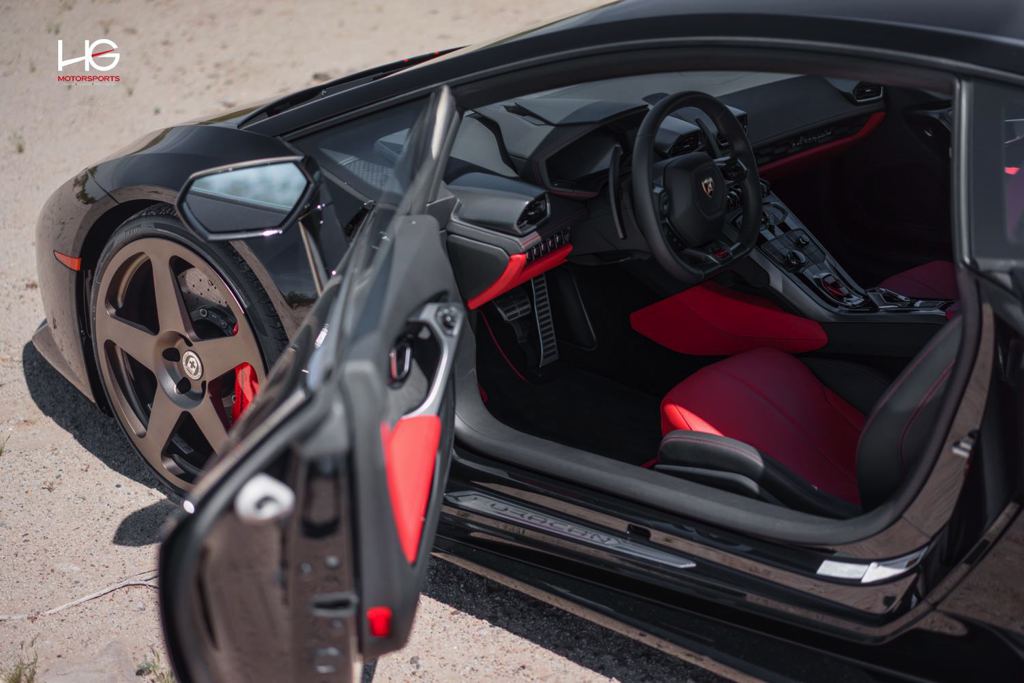 HG Motorsports has also fitted this Lamborghini Huracan with a cool two-tone racing stripe in grey and red to make it even more distinguishable. The stripe goes really well with the two-tone red and black interior which is another unique feature of this particular baby bull. All this car needs now really is a small tail spoiler and it’ll be all set.