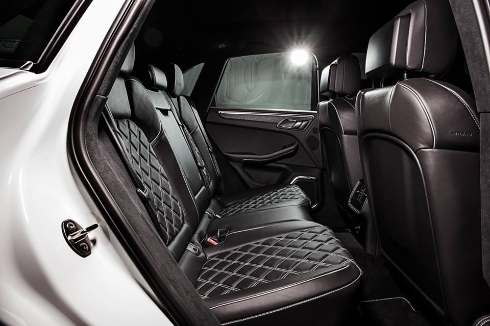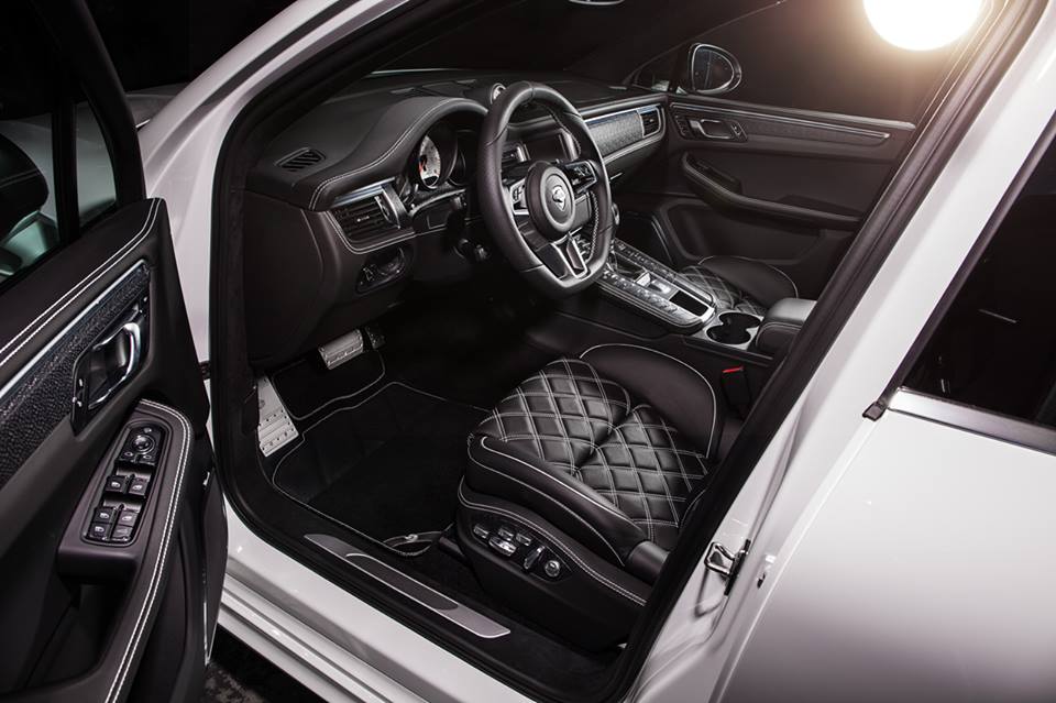 To show off its top level craftsmanship, Techart Porsche Macan features contrast stitching and unique patterns not just on the seats, but also on the dashboard and consoles as well. The car also features sport pedals, white dials, door sills, special floor mats, and suede parcel shelf.
