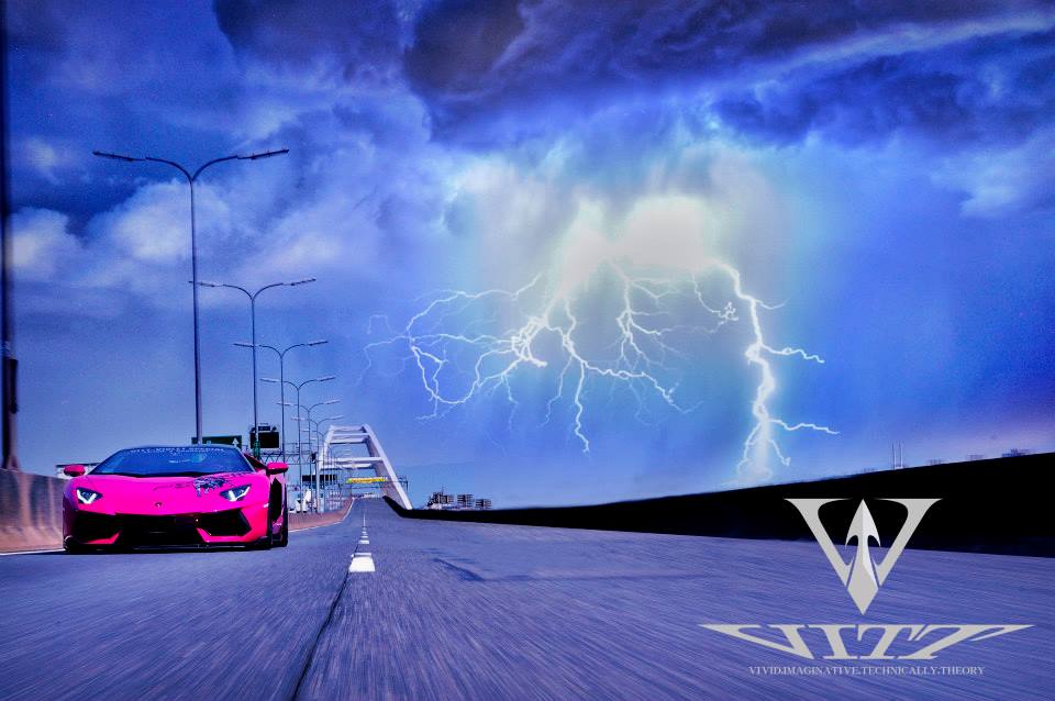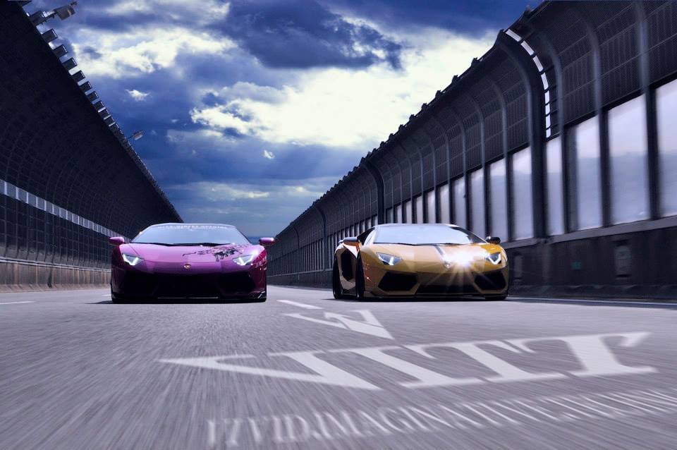 The violet-colored Vitt Squalo Lamborghini Aventador Roadster returns for a new showing off session, this time with a number of artistic photos. These heavily edited pictures show the Squalo in company a yellow Aventador, and together they apparently cause armageddon.