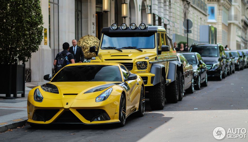 A few months ago we brought to you pictures of a very special convoy spotted in Dusseldorf, Germany, which included the Mansory 6×6 Gronos and F12 Stallone, both in yellow. Now they’ve been spotted again, this time in Paris on their way to Cannes, joined by a Mansory S63 AMG, also in yellow.