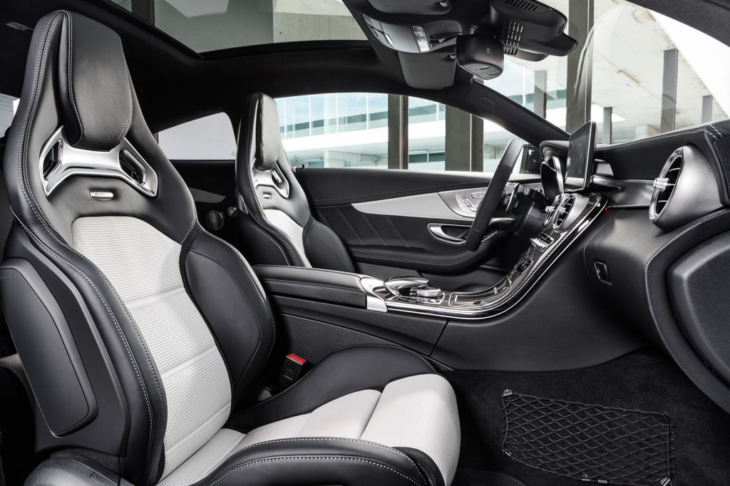Design-wise, the 2017 Mercedes C63 AMG Coupe looks pretty much the same as the normal C-Class Coupe, which looks similar to the C63 Sedan, save for the rear-end which is a lot sportier in the AMG model. You get the familiar AMG bumpers and aero paraphernalia which in the S model come in naked carbon fiber. The wheelarches are a bit wider as well, and they house larger wheels and tires. Inside the cabin the AMG treatment means you get standard sports seats in ARTICO/microfiber DINAMICA or optional Performance seats plus sport steering wheel and carbon fiber.
