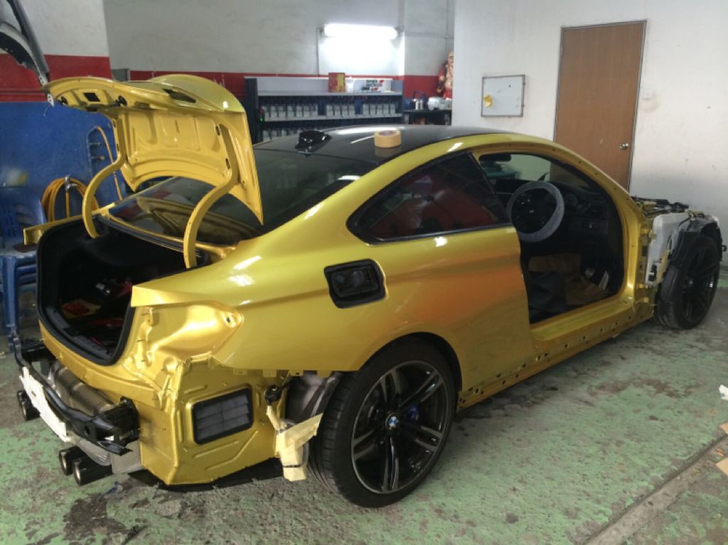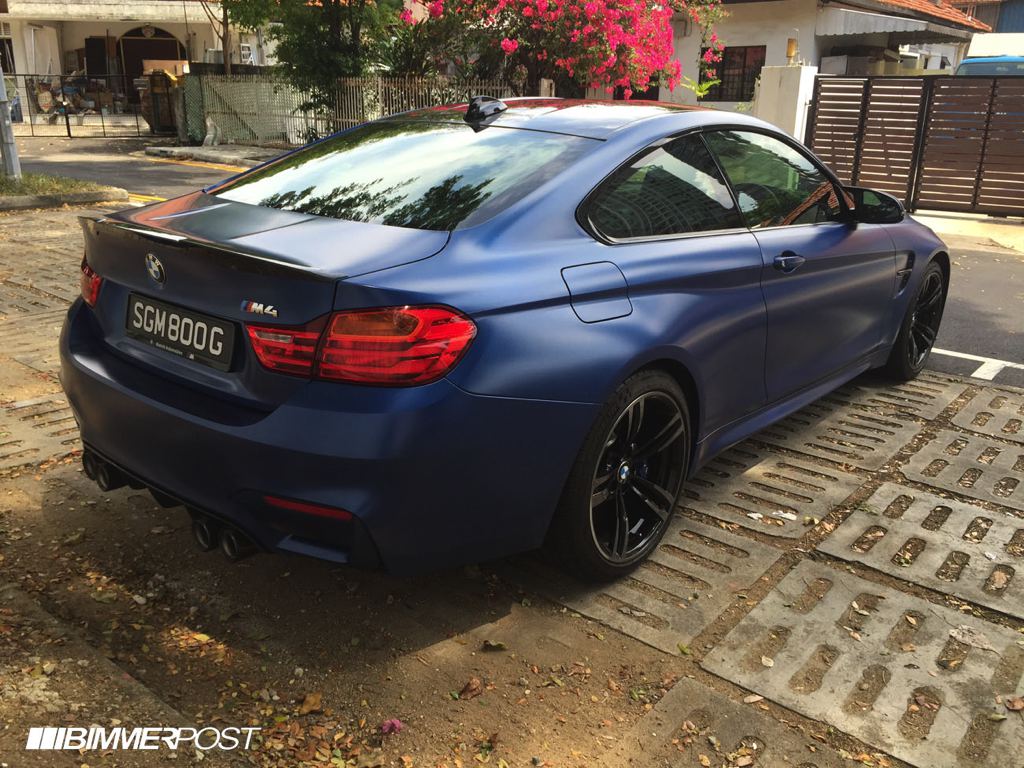 Before the color goes on though, the Frozen Blue BMW M4 was equipped with a number of upgrade parts, chief among which iND Chrome black front grills and side grills, M Performance rear diffuser and exhaust tips in carbon, carbon front lip and rear spoiler, BMC air filters, and M performance interior trims. Later on, the owner has plans to add M Performance side skirts, Alcantara steering wheel with M stripes, ModCarbon seat shells, and H&R wheel spacers.