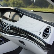The highlights of Mansory Mercedes S63 Black Edition on the outside include a carbon body kit which looks surprisingly discreet on the black sedan, including front spoiler and grille surronds, front grille, lip spoiler, mirror caps, side skirts, side vents, rear diffuser, and the roof and boot spoiler combo. Add to that a set of striking 22-inch mono-block cast “MULTISPOKE” MAnsory wheels fitted with Vredestein ULTRAC SESSANTA, and you have one hot looking Merc on your hand.