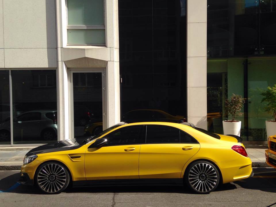 By now you probably know about this guy who has bought a number of Mansory cars, all of them in yellow, and is touring Europe with them. A while ago the convoy was spotted in Paris with the S63 Sedan, Ferrari F12, and Mercedes G63 6×6. This time the S63 was caught hanging out with the G65 Gronos.