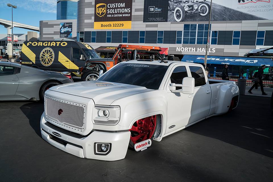 We do realize you want to scroll down to the gallery and check out the chicks. But before you go let’s review some of the car highlights of their lineup. This is a car blog, after all. The biggest highlight here, and probably of the whole show, is the superb Liberty Walk Lamborghini Huracan wide body, presented in two red and white examples, with a few different set of Forgiato Wheels. This is now the new benchmark by which all other widened Huracans are going to be measured. You will also see in the gallery a fair few tricked-out Ford F-150s. Forgiato has a big love for pickup trucks and the ‘Buck Fiddy’ is one of them best. So no surprises there.