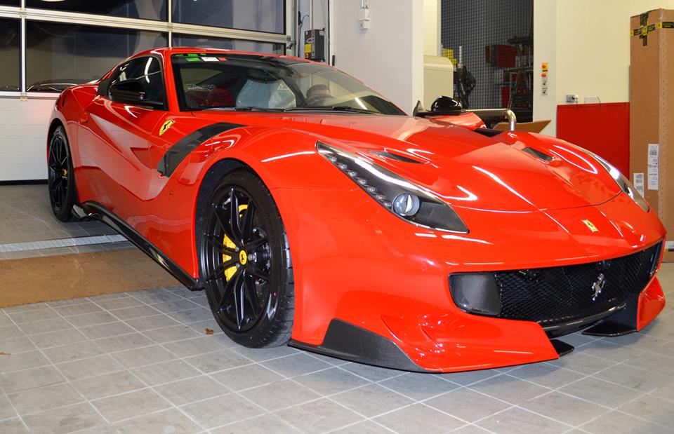 This rather special Ferrari F12tdf has been delivered to Ferrari Cannes where it probably goes under some preparation like detailing and paint protection before the owners comes to pick it up. The Rosso Corsa paint job on this particular tdf helps you appreciate the new styling details of this model by accentuating the carbon fiber parts.