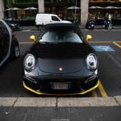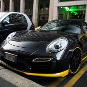 Now, we are not big fans of yellow accents on cars. But we have to admit they work rather well on this black Porsche 991 Turbo S. Whoever came up with this design, whether it was Porsche Exclusive or some aftermarket specialist, clearly knew what they were doing.