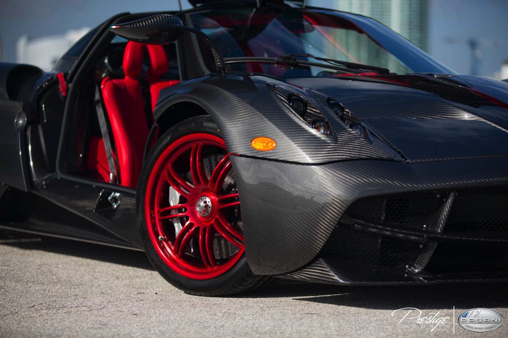 Pagani Huayra Volcan is a car Mr David has ordered for himself, so it’s designed to his personal specifications. The body is almost entirely naked carbon fiber, which in true Pagani fashion has matching carbon weaves, garnished with subtle red accents and stripes and a set of not-so-subtle candy apple red wheels. The same combination is found inside the cabin, although here red is the dominant color.