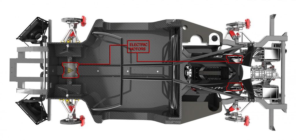 Total is 880kW ( 4 x 220kW) , 1080Nm (4x 270Nm) . In Bhp 1180 ( 4 x 295bhp ) – Motors manufactured for Arash by Compact Dynamics Germany. Max motor speed is 13,000 rpm