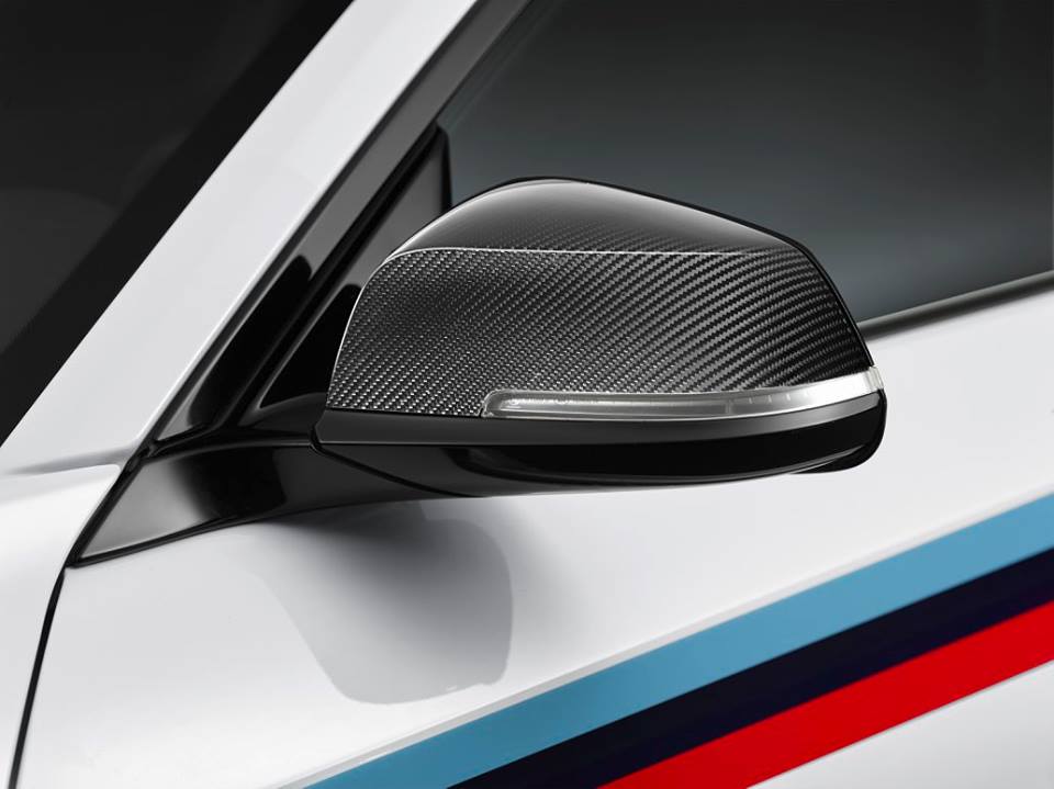 The main ingredients of BMW M2 M Performance Parts, besides the paint work and racing color accents and details, include matte black kidney grille, carbon fiber front splitter, carbon side skirts, carbon rear diffuser with integrated 93mm tailpipes, carbon mirror caps, and a cool carbon fiber boot lid spoiler. These parts would look great on a regular M2, but we have to say when yo pair them those graphics, they look a bit dorky.