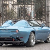 The reason for Alfa Romeo Disco Volante Spyder utter and complete exquisiteness is partly because the design is just amazing, partly because it’s based on the Alfa Romeo 8C, and to a great extent because this car is made using the old craftsmen technique: men beating sheets of aluminum into the shape of a car with a hammer. The color on the Spyder on display in Geneva is called Blue Ceruleo and it’s paired with Connolly leather inside.